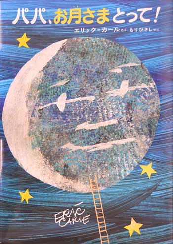 娘に「お月さまとって」とせがまれたパパ。長いはしごを持ってきて、月に向かってのぼり始めます。月の満ち欠けという大自然を背景に、お話は進みます。ダイナミックな仕掛け絵本にびっくり! 2002年、アメリカにエリック・カールの美術館ができたそうですよ。